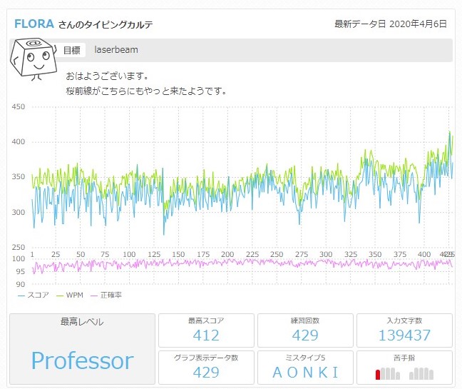 ちなみにこれが私のe-typingのカルテです。