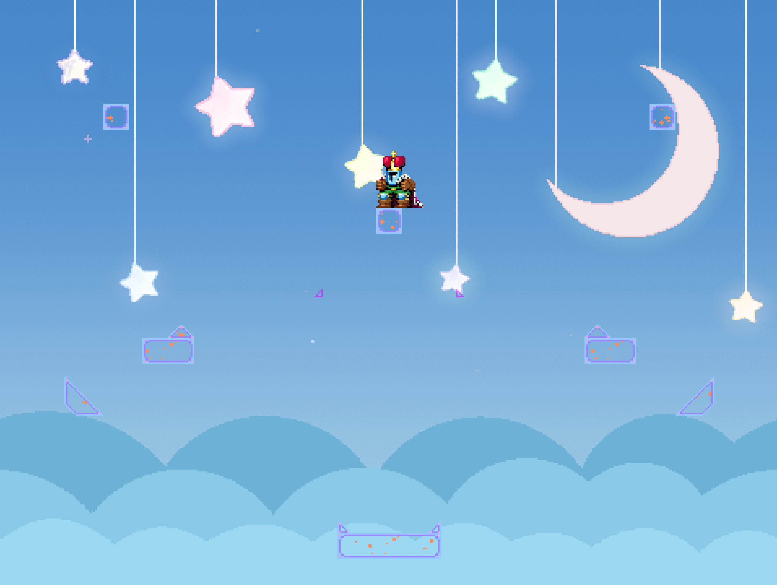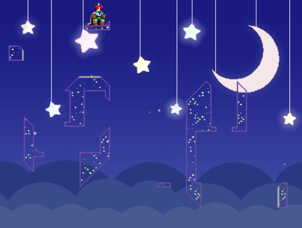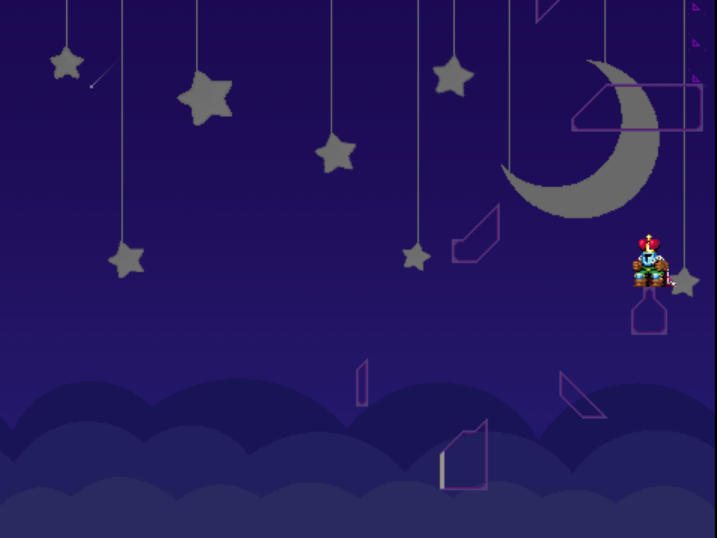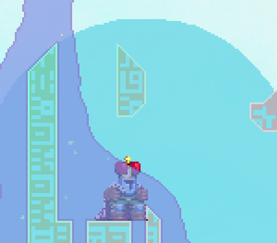 2つ目のアニメーションに関しても、私自身が1枚絵のマップよりも動くマップのほうがどちらかと言えば好きだからですね。あと、このマップはもともと習作として作成をはじめたものなので、Jump Kingでどのような表現ができるのか知りたく、できるだけ色んな機能を触りたかったのでアニメーションを多めに入れたというのもあります。