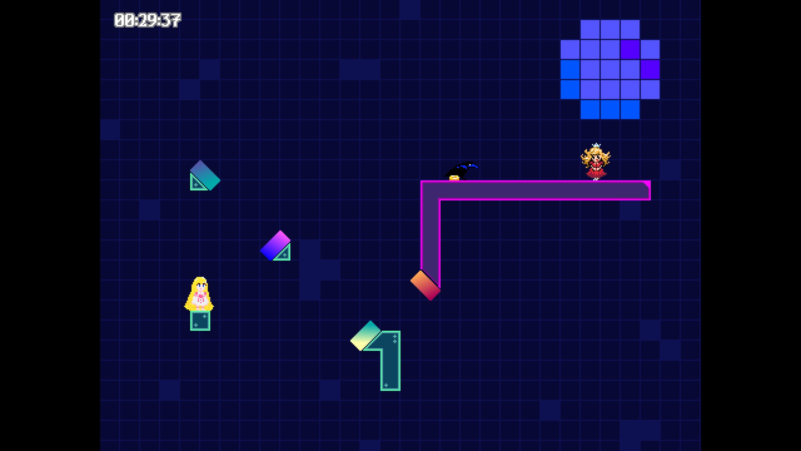 glitch babeの続編ということで画面のクオリティは間違いない。特にタワーの音楽・画面は最高。ギミックの周期的境界条件のやつは嫌いだけど、このマップは画面端を通ると構造が変化するやつで、オリジナリティがあり好き。姫の1つ前の画面にいきなり水中ギミックを入れたのはまじで悪魔だけど、タワー下の復帰エリアに人の心を感じたので許す。