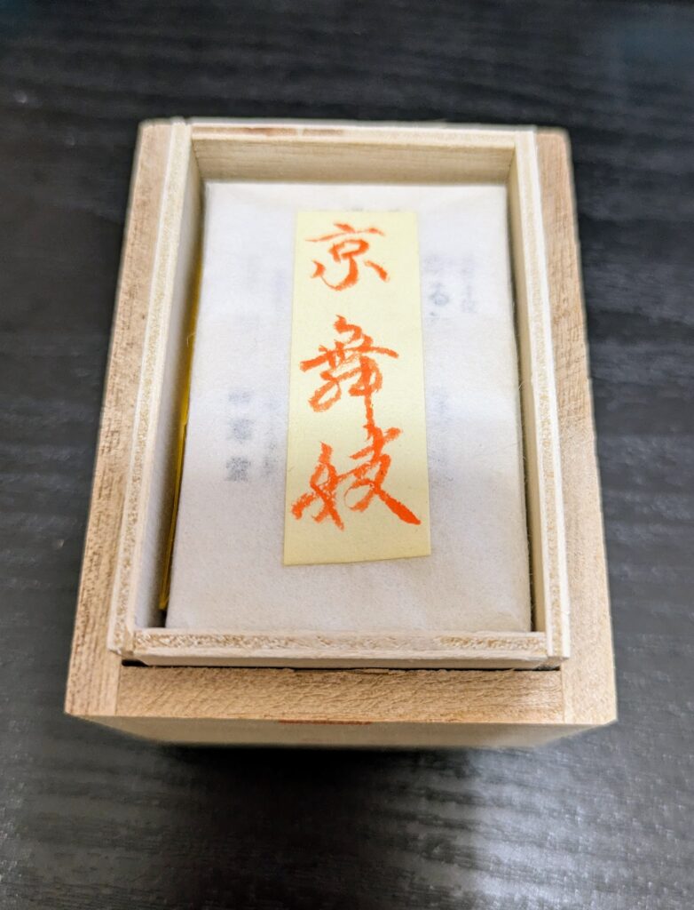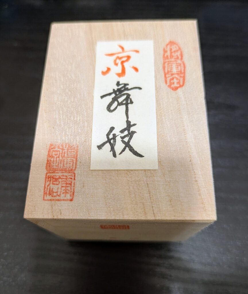 あと、箱の蓋がけっこう緩めでした。紫宸殿は蓋を持って持ち上げても大丈夫だったんですが、京舞妓は蓋を持って持ち上げると蓋だけ持ち上がる感じです。これは持ち歩く場合はけっこうな不便ポイントですね(これは紫宸殿と京舞妓の差というより桐箱の個体差だとは思います)。