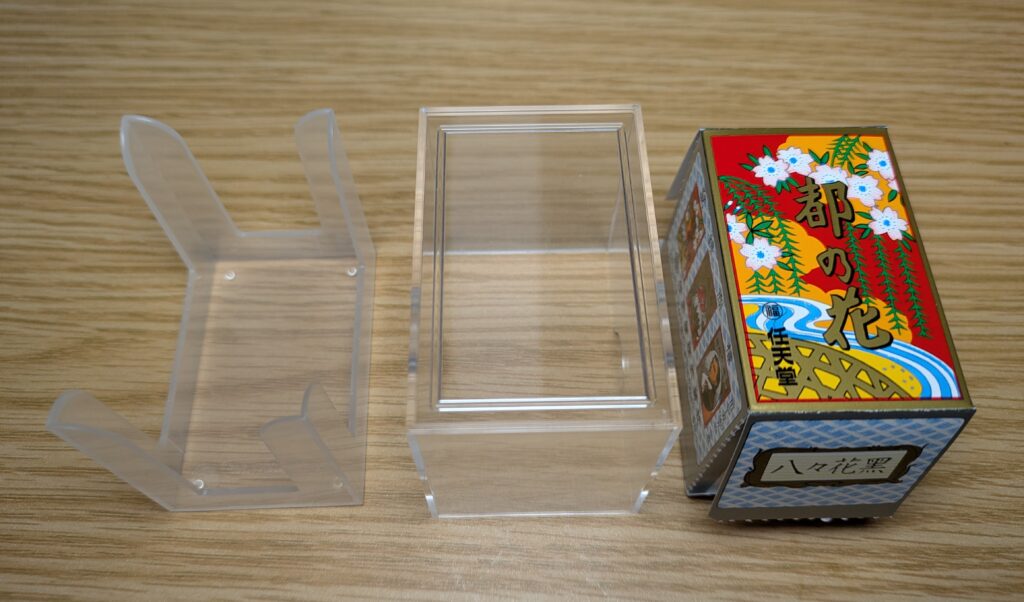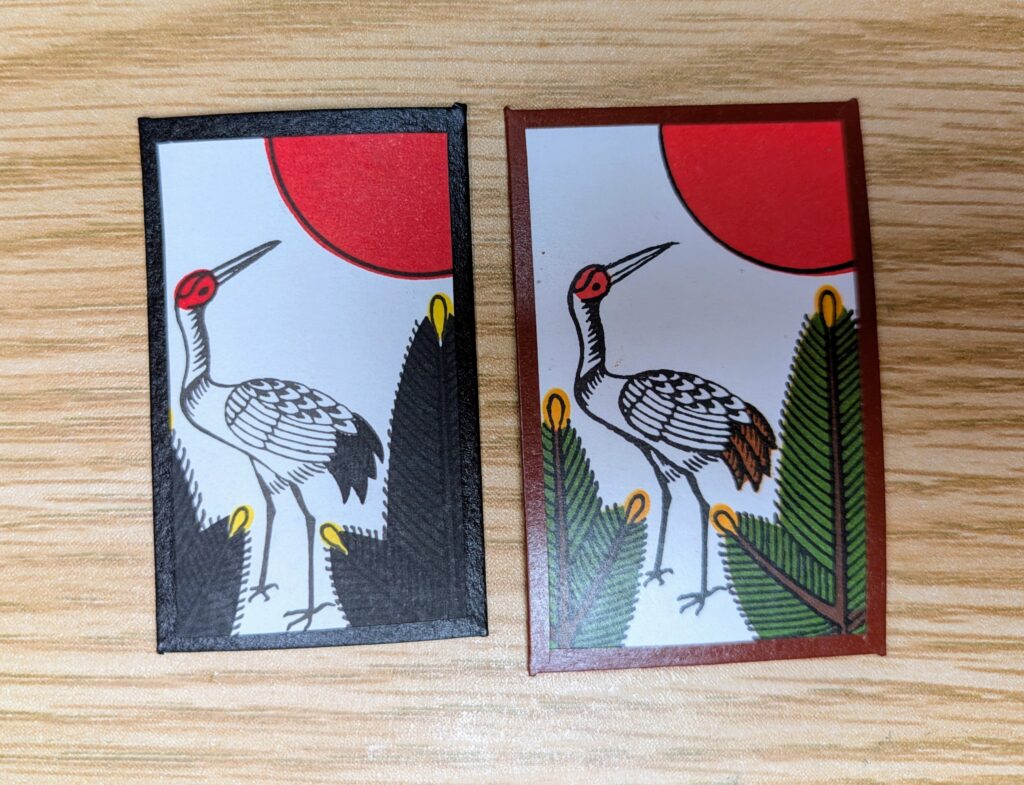 札のデザインは少しだけ特殊かもしれません。黒が都の花、赤が金天狗ですが、金天狗のほうが線が細い感じですね。デザインは任天堂のほうが好みです。ホトトギスの目なくない?