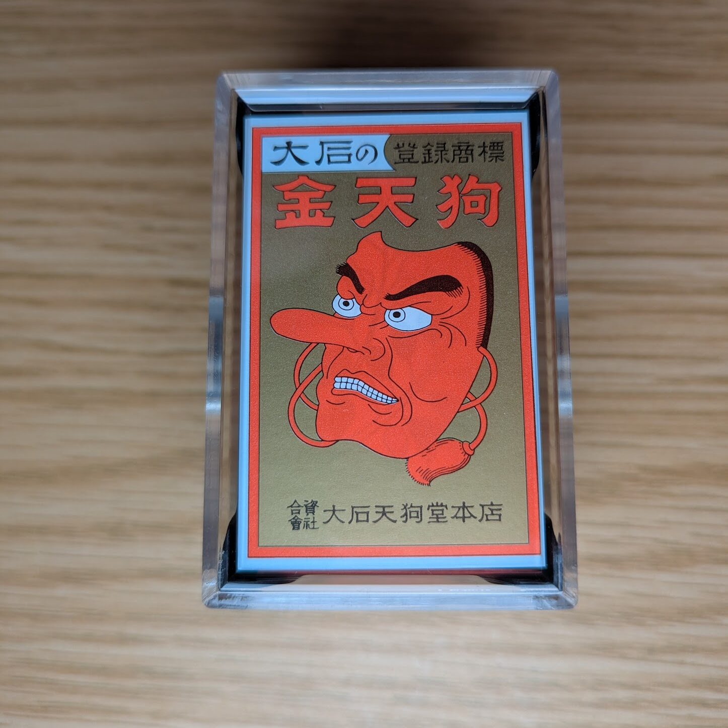 キタミ堂のデザインで、大石天狗堂が製造しているらしいです。ケースも大石天狗堂の花札と同じものに入っていました。