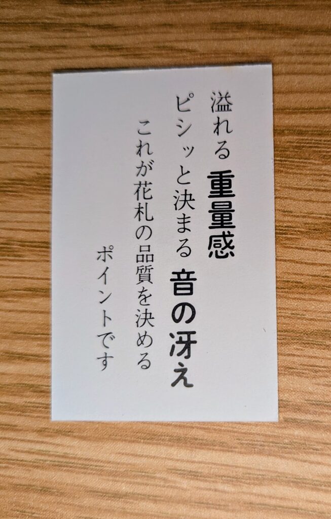 札のクオリティは高いです。音は金天狗と似ており、かなり良いです。音に関しては安価なグレードのものとは明らかに差があると言っていいと思います。