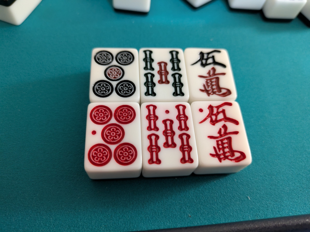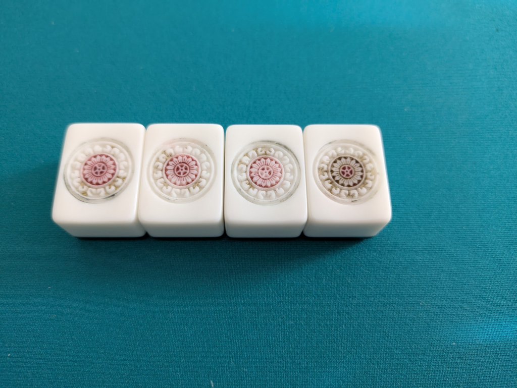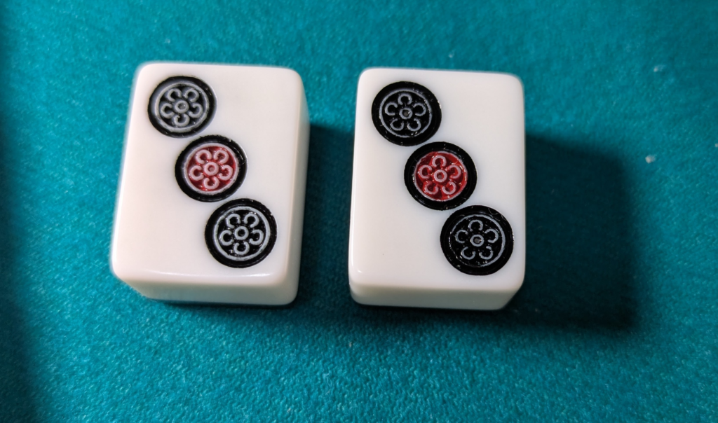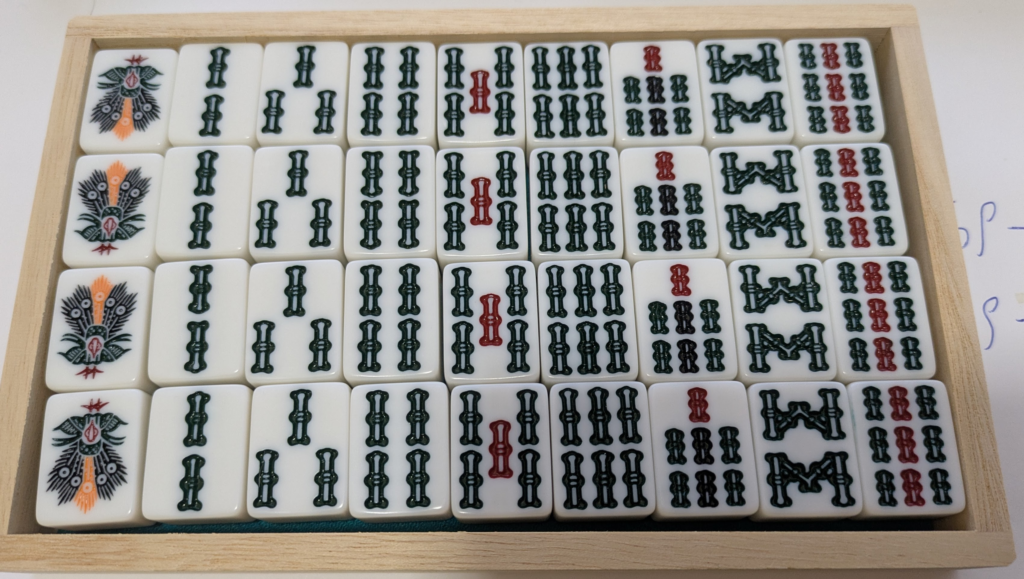 感想としては、まあまあの満足感って感じです。牌のサイズ感とか重量感は好みで、あとは何より索子と發が緑で塗ってあるのが高評価ですね。ただ筒子はちょっと塗りの品質がよくないかなーって感じです。