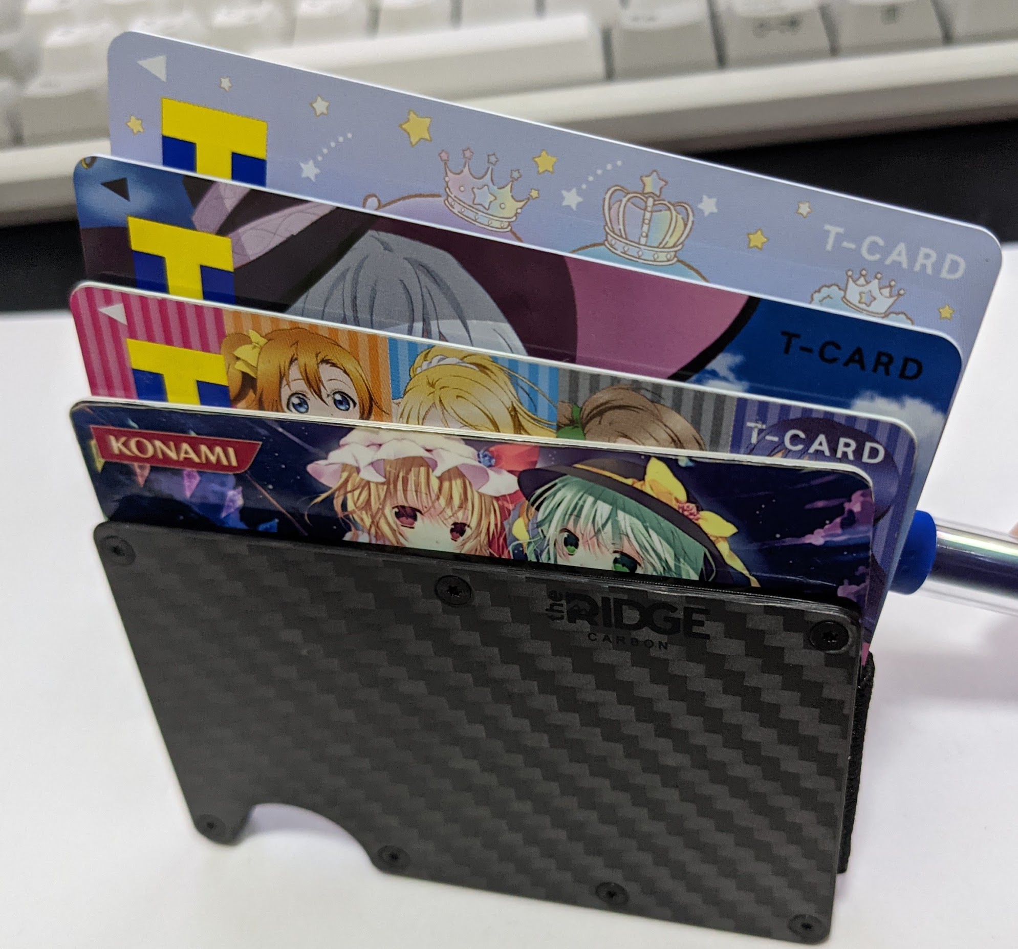 また、カードを傷めないところもいいです。おそらく一番有名なマネークリップの財布に『STORUS』というのがありますが、あのタイプはカードを折り曲げて固定するためカードが曲がります。しかし『the ridge』は挟んで固定するためカードを痛めません。